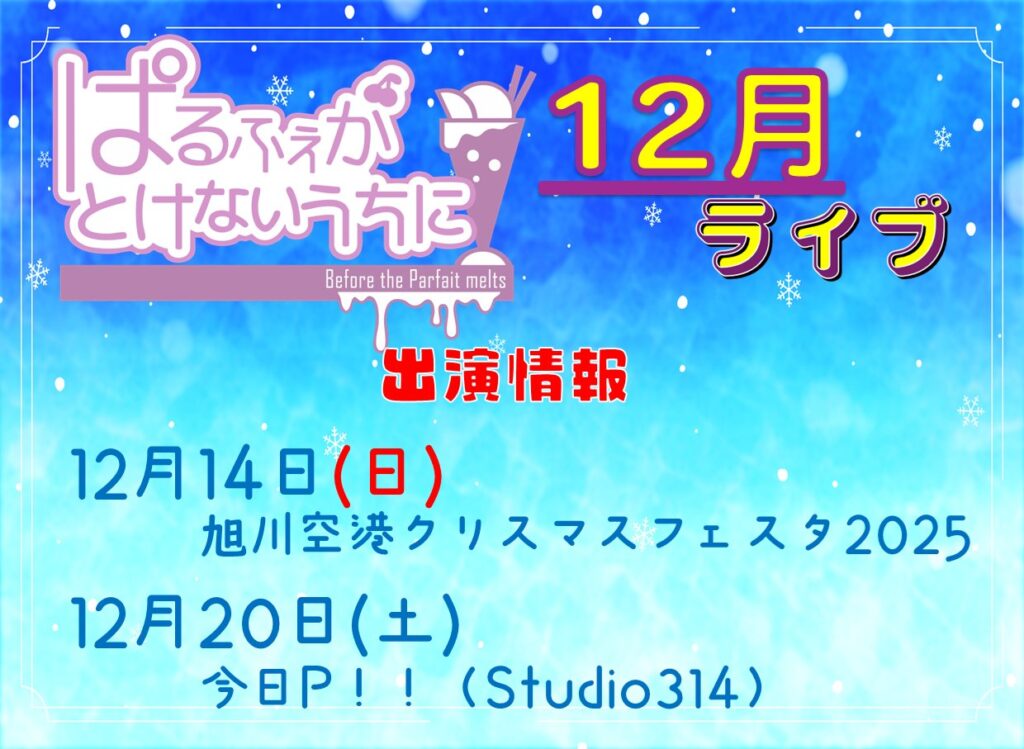 【お知らせ】ぱるふぇがとけないうちに出演情報